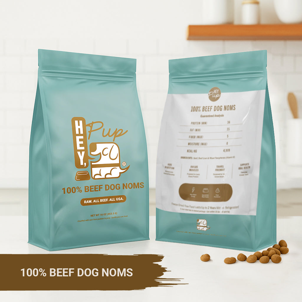 Hey Pup Dog Noms are where it all began — made from 100% real, freeze-dried beef with no fillers, grains, or preservatives. Simple, natural, and crafted with care, they’ve become a favorite among dogs (and their humans) who want the cleanest, most satisfying treat possible.